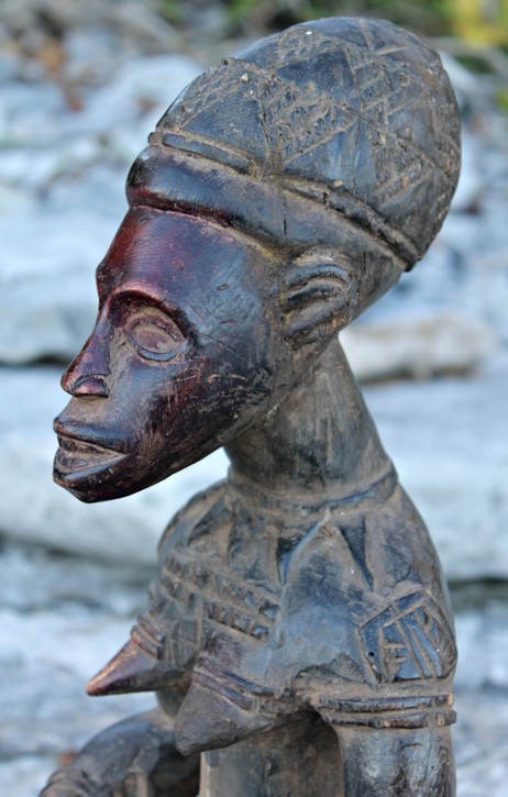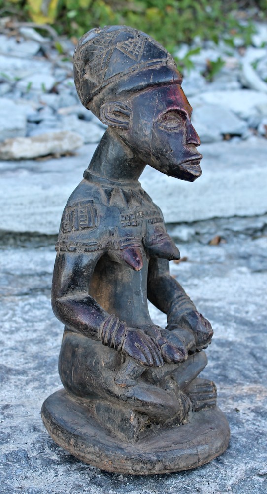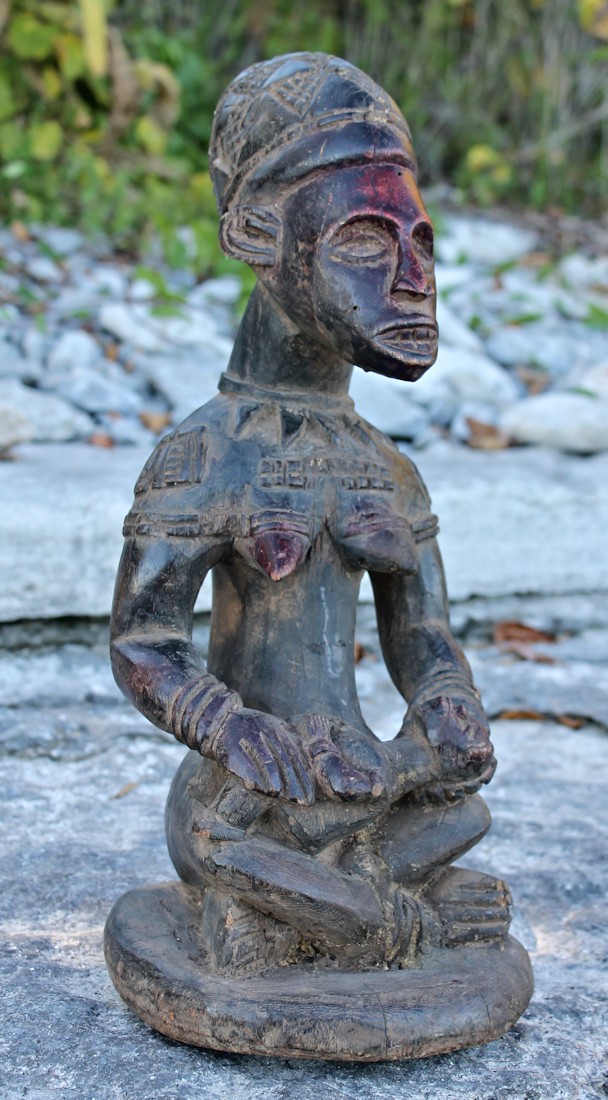 Carved from dense, heavy wood, on offer from our personal collection is this seated maternity figure from the Bakongo peoples of the DR Congo. Sculptors from the DR Congo region are renowned for their artistry, & their carvings are highly prized.