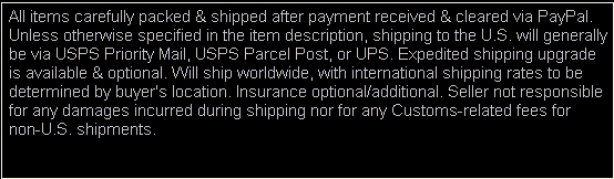 Please note: for non-U.S. shipments, certain package size restrictions may apply. Please contact us to confirm if shipment of this piece is possible to your country via regular postal means.