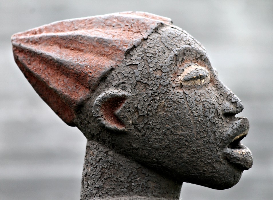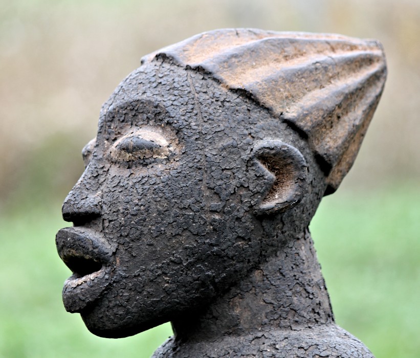 On offer from our personal collection is this captivating maternity figure from the Bamum/Bamun peoples of Cameroon. Carvers & metalcrafters from the Cameroon region are renowned for their skilled artistry & imaginative work, & their sculptures are highly prized.