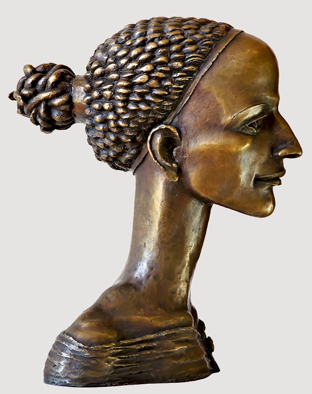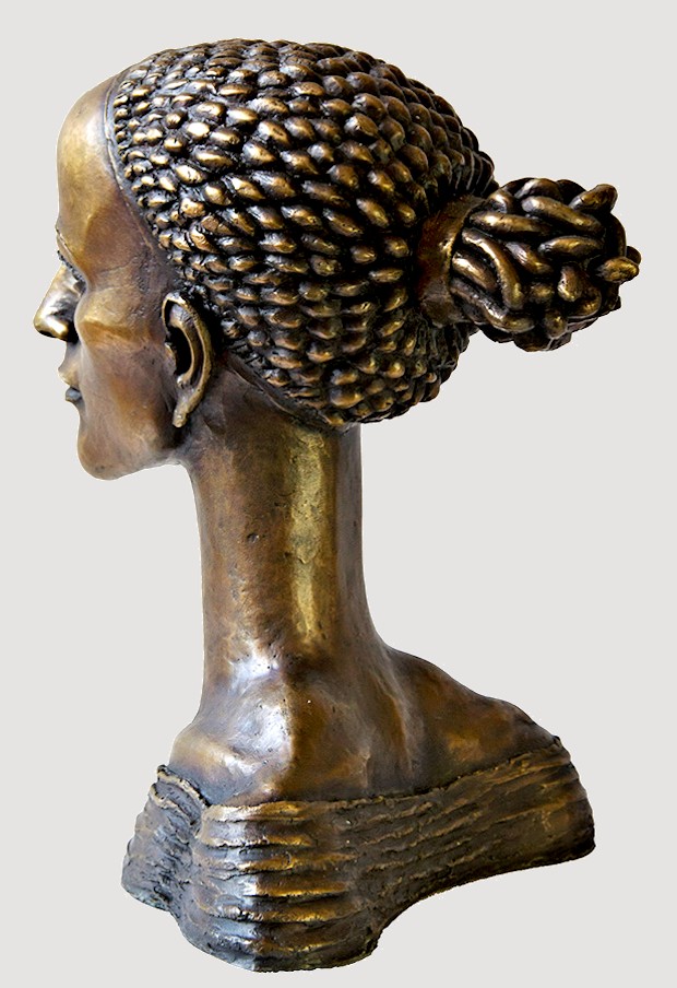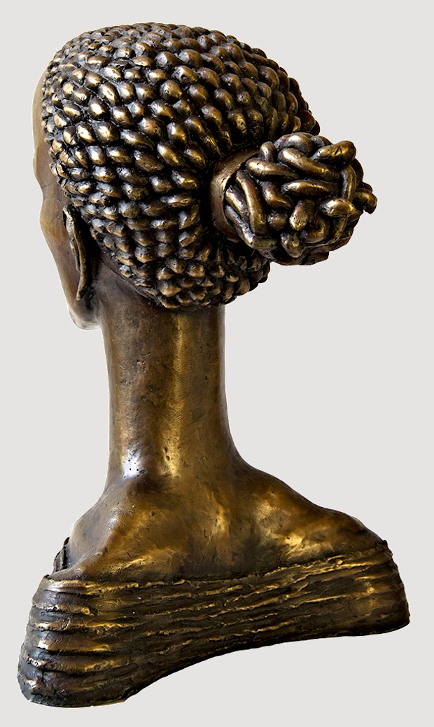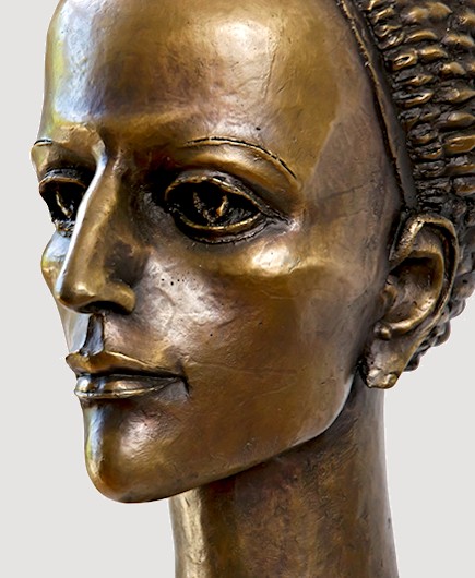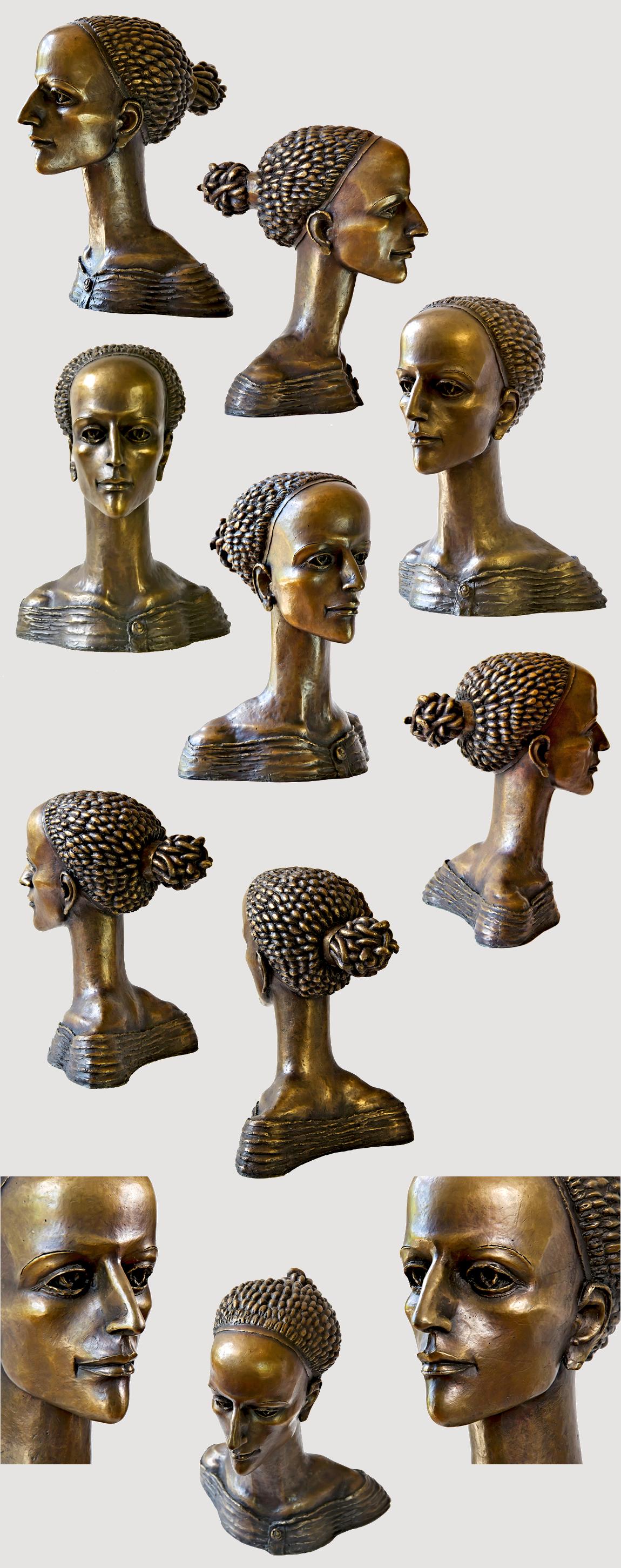 Sharply defined contours plus a long, slender neck help to offset the strong, smooth facial features of the Muse Head, contrasted by her neatly woven coif, which upon closer inspection, reveals itself to be a cluster of twisting snakes. Though heavy, the bronze is a hollow-cast. Remarkable detail... Elegant, graceful, & highly refined, this dynamic work, standing nearly a foot tall, makes an exquisite display.