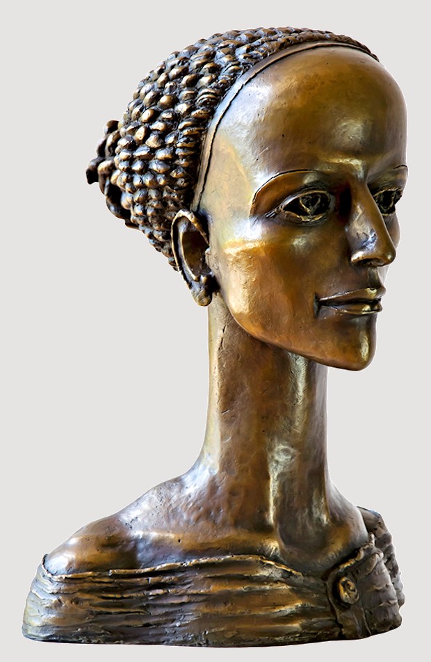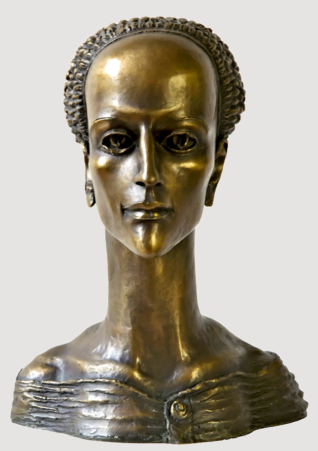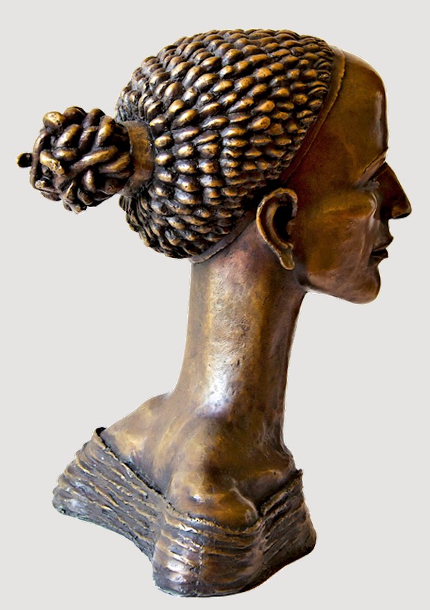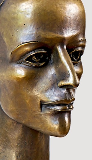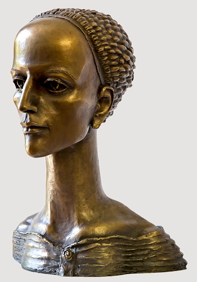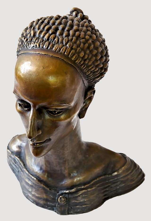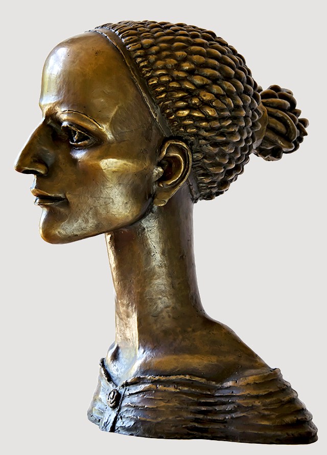 Sharply defined contours plus a long, slender neck help to offset the strong, smooth facial features of the Muse Head, contrasted by her neatly woven coif, which upon closer inspection, reveals itself to be a cluster of twisting snakes. Though heavy, the bronze is a hollow-cast. Remarkable detail... Elegant, graceful, & highly refined, this dynamic work, standing nearly a foot tall, makes an exquisite display.