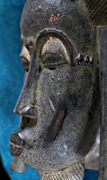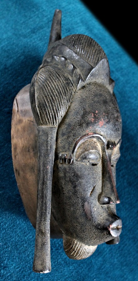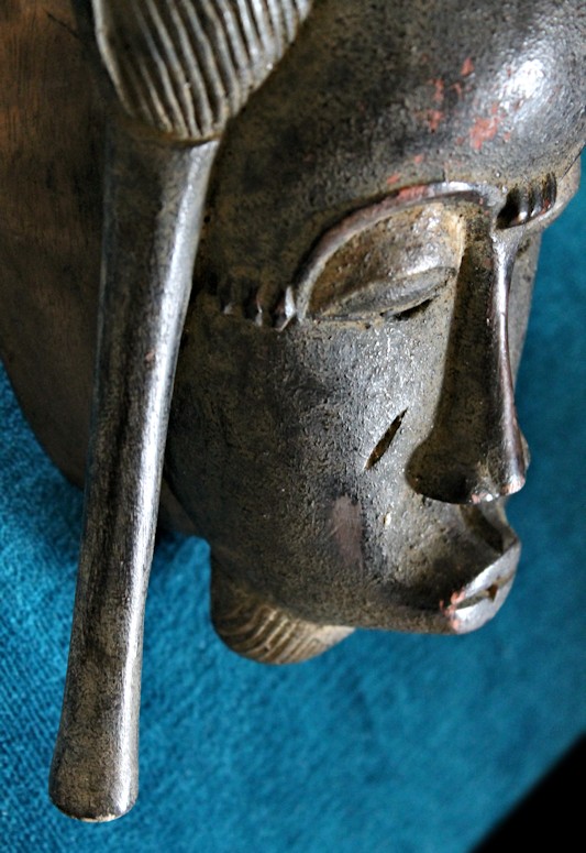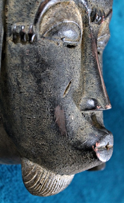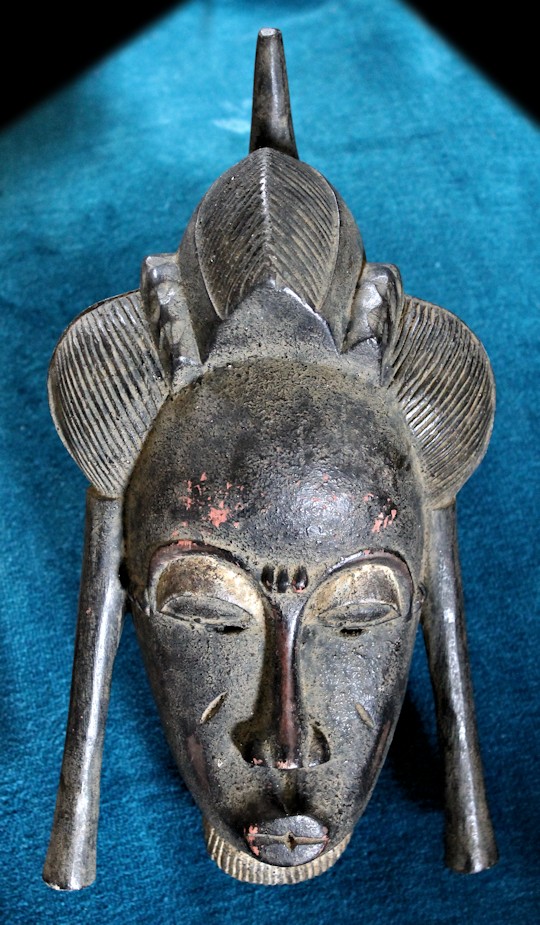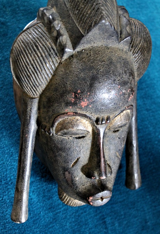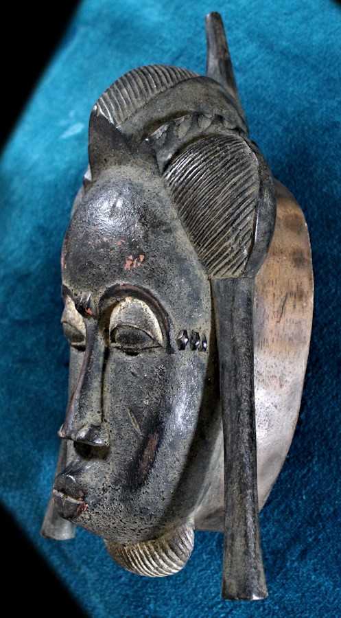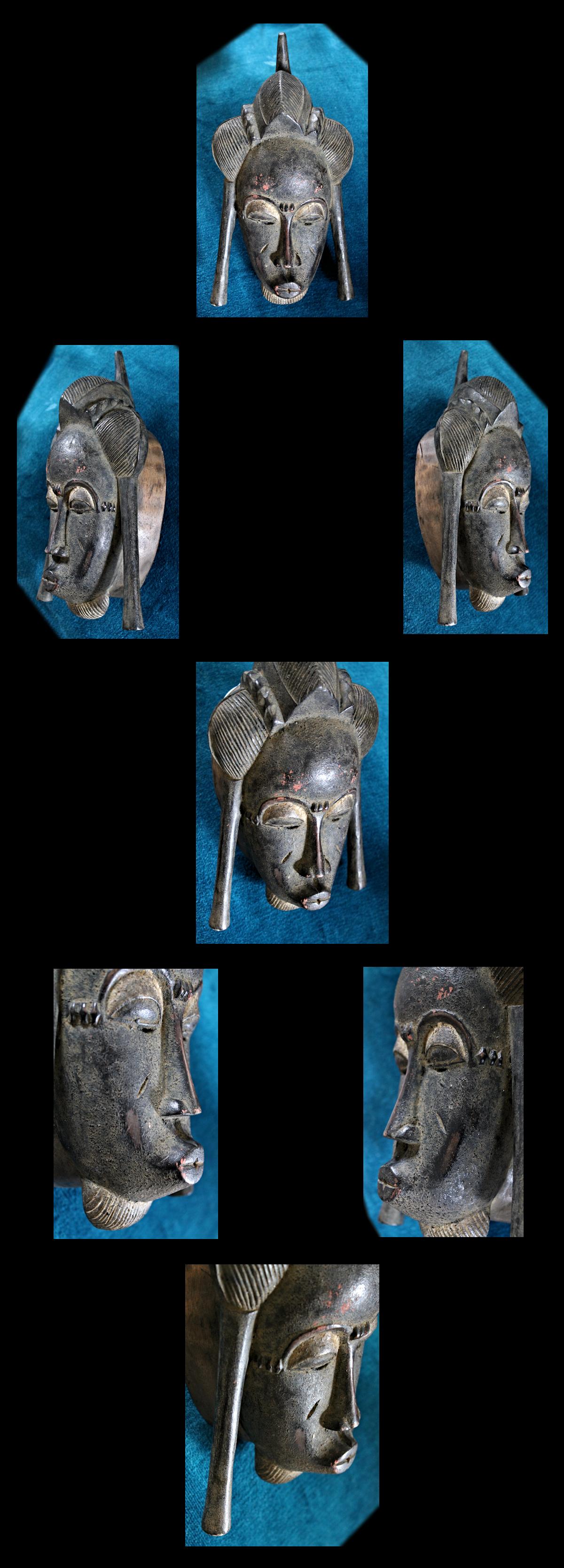 On offer from our personal collection is this elegant portrait mask from the Baule peoples of the Ivory Coast. Skilled carvers, the Baule are noted for their high level of artistry, & their portrait masks, intended to represent honored members within the tribal community, are no exception.