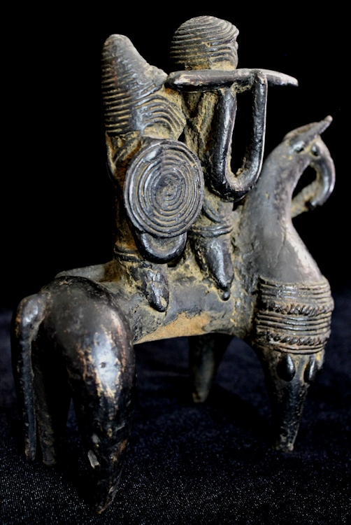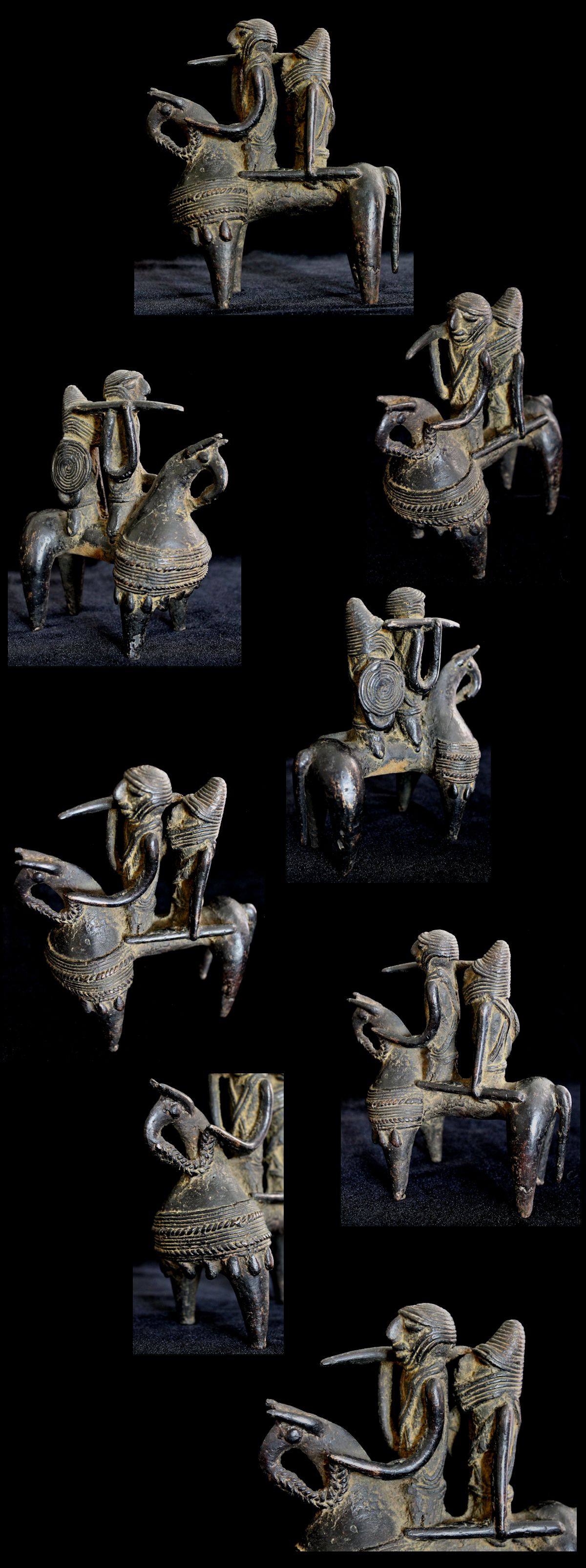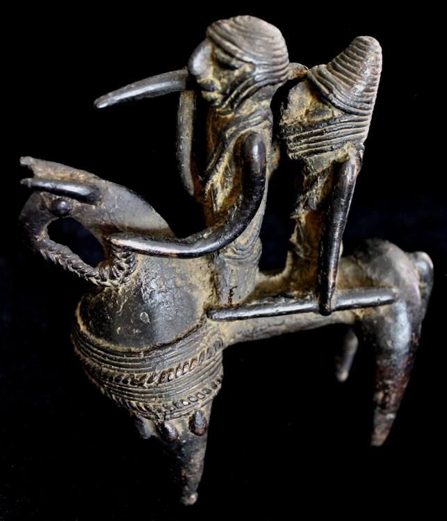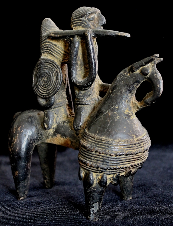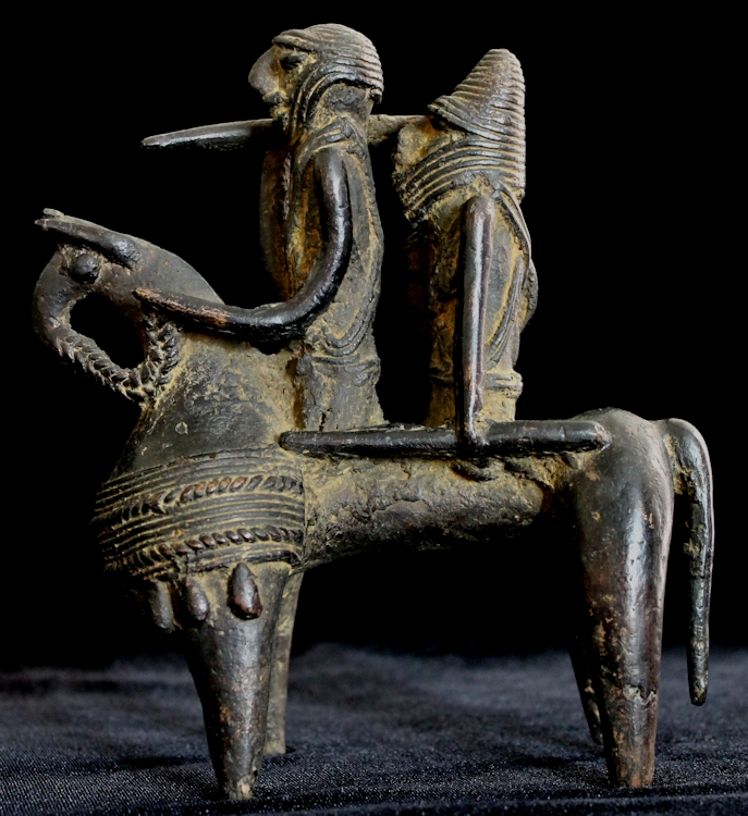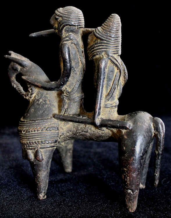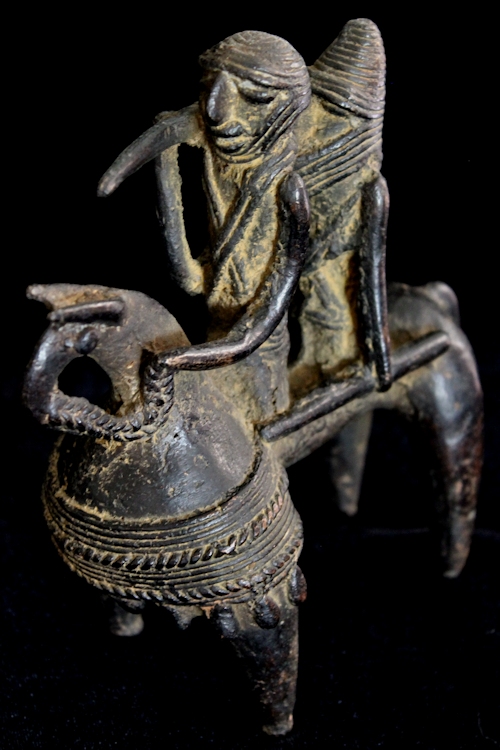 Depicting equestrian warriors, on offer from our personal collection is a particularly handsome bronze sculpture from the Kotoko peoples of the Chad region. Such sculptures were intended as memorial offerings.