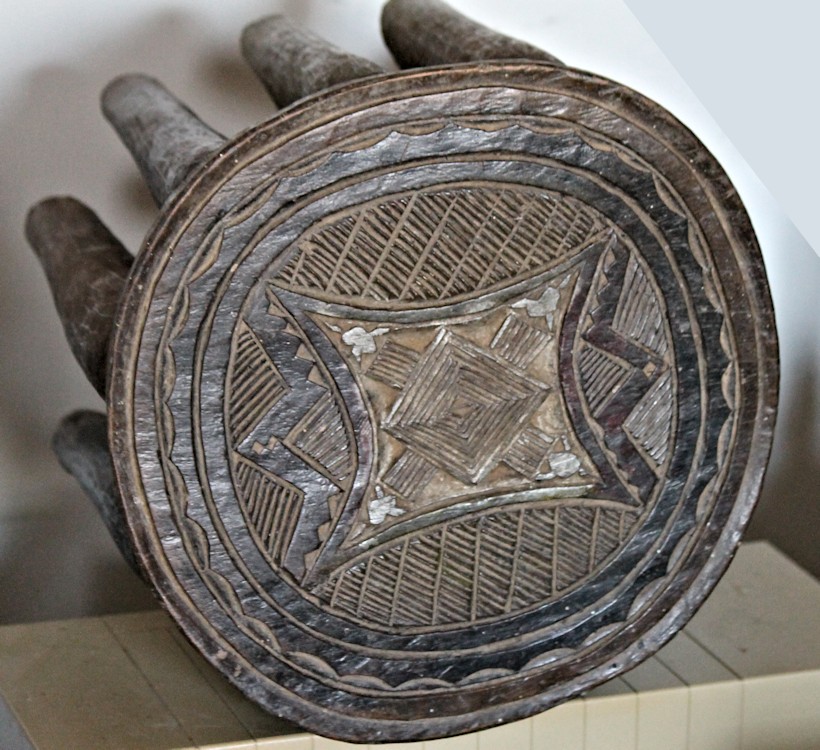 On offer from our personal collection is this superb stool from the Nupe peoples of Nigeria. Carved from a single piece of heavy, dense wood, this piece features 10 legs, plus multiple geometric patterns carved into the top surface. Masterfully carved, the carver managed to capture a comfortable angle across the sitting surface that harmonizes with & conforms to a person's physiognomy, making it a highly functional piece.