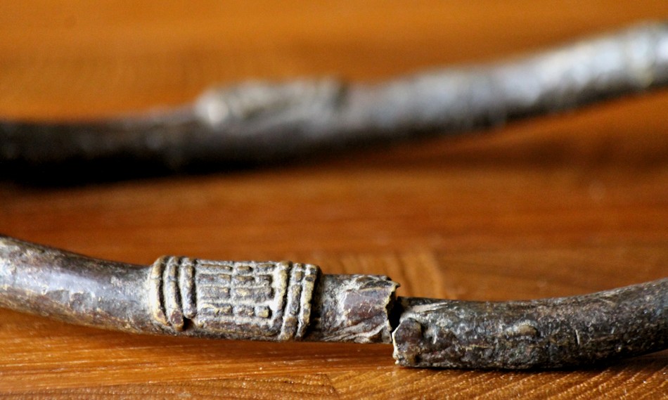 Despite the separation in the band (viewable in the photos), this well-used ankle bracelet is in otherwsie good overall condition. Wonderful old patina & a lovely display.