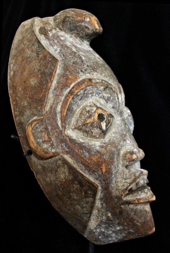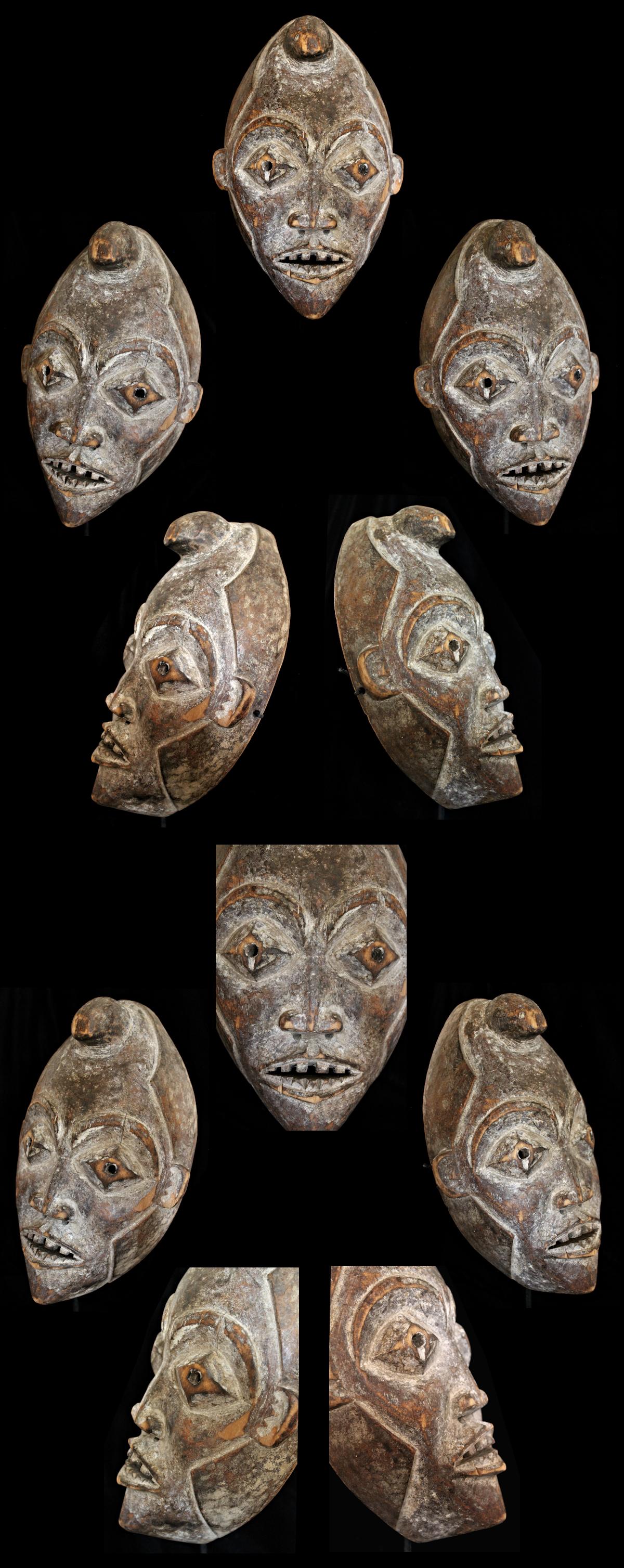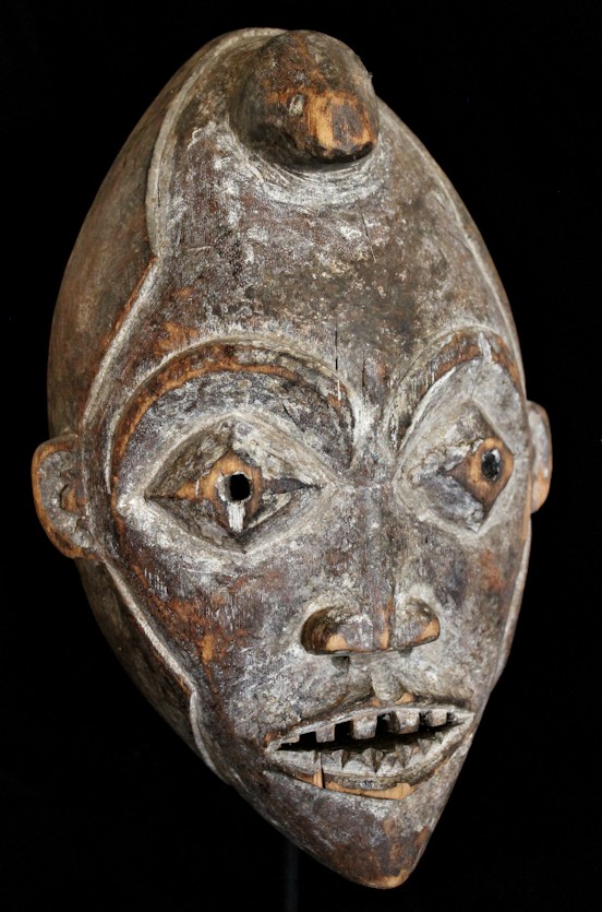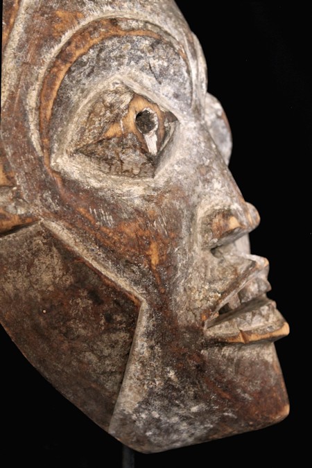 On offer from our personal collection is this dynamic old Nganga divination mask from the Yombe/Bakongo peoples of the DR Congo. The diviners are believed to have special powers, enabling them to determine the causes of various events & circumstances within the tribal community - including illness, natural disasters, etc. Such masks are thought to represent the diviners who wear them.
